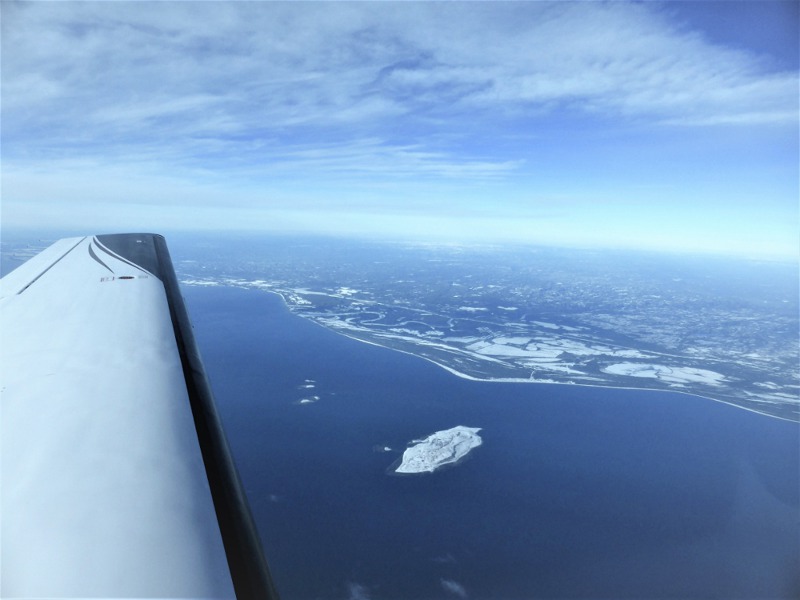 V Elizabeth City velmi rychle dotankováváme. Nejsme na zemi ani 30 minut včetně pojíždění a už přidávám plyn na dráze 28. A všechno se mi začíná znovu vybavovat. Tady to přece znám! Vždyť jsem tu s Jirkou Prušou letěl jen před pár měsíci. Námořní základna a loděnice Norfolk ve Virginii, dlouhé pobřeží až k New Yorku, Mannhattan na dohled (ovšem ne dost blízko na dobrou fotku). Boston v dálce, Providence už pod sněhem, rychlá vzpomínka na let po státě New York a kopce mezi Pittsfieldem a Bostonem a už jsme v oblačnosti a zahajujeme klesání do Bangoru ve státě Maine.