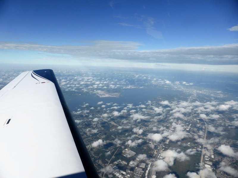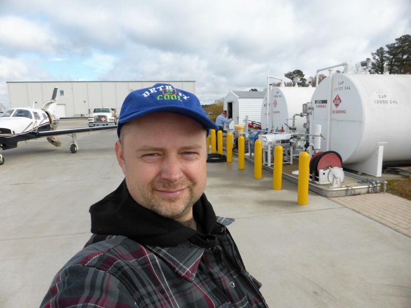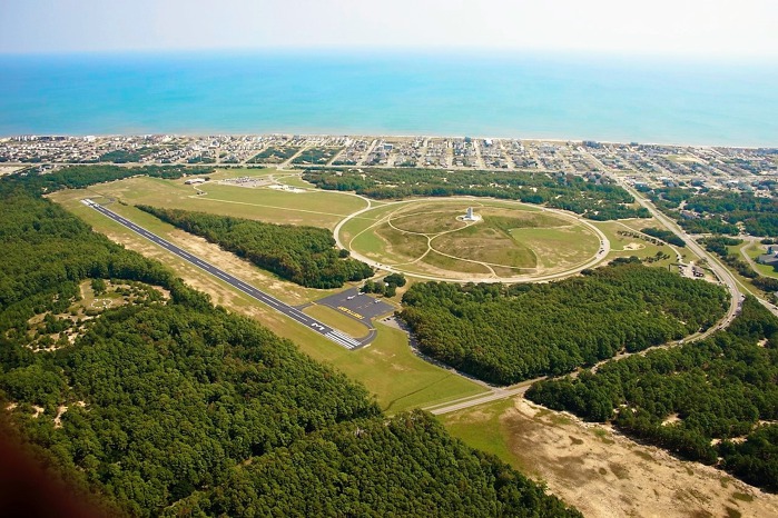S palivem dotankovaným po všechny čtyři "špunty" tedy z letiště Palatka Larkin (28J) startuji z nepříliš dlouhé dráhy 17 a opatrně poměrně těžkého Mirage točím na sever k Jacksonville. Naším prvním cílem pro technické mezipřistání je letiště Elizabeth City (KECG) v Severní Karolíně. Mají tu levné palivo a možnost přístrojového přiblížení ILS, byť to jsem vzhledem k pěknému počasí nevyužil a šel jsem vizuálně levým okruhem. Pár kilometrů odsud na jihovýchod leží slavné letiště First Flight (KFFA), Kill Devil Hill, takže si během klesání připomínám dosud čerstvý zážitek z návštěvy místa, kde bratři Wrightové poprvé v historii lidstva odlepili od země stroj těžší vzduchu. Toto slavné místo je jen pár kilometrů jihovýchodně od Elizabeth City a s Jirkou Prušou jsme ho navštívili začátkem září. JEstli máte chuť, podívejte se na video z obletu letiště.