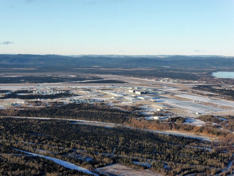 No, na dohled... Ono je to k němu ještě 200 kilometrů, nicméně letiště v Goose Bay (CYYR) v provincii Newfoundland and Labrador je posledním kontaktem se zemí, pak až Narsarsuaq v Grónsku. Mezitím 1 000 km oceánu. Letiště Goose Bay je vzhledem ke své poloze i významnou vojenskou základnou kanadského letectva, navíc každoročně využívanou státy NATO pro svá vojenská cvičení nad rozsáhlou nezalidněnou krajinou. Tady si na hluk nízkoletících letadel opravdu nikdo stěžovat nebude. Němci zde dokonce mají celoročně udržované ubytovny. Podle informací od našeho řidiče tu byli dva týdny před námi Turci s F-16. Zajímavostí je, že hlavní dráha byla svého času zvažována i jako záložní plocha pro přistání raketoplánů.