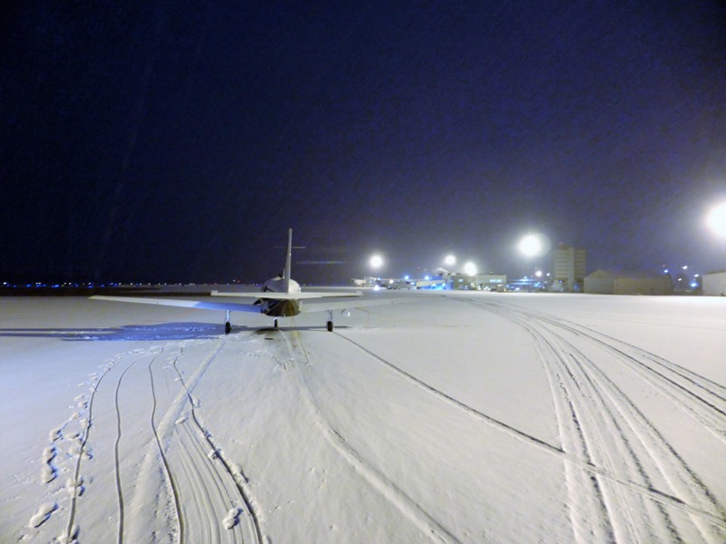 Zima se tu ukazuje v celé kráse, sněží a nízká základna mi umožňuje potrénovat přiblížení ILS na dráhu 33 letiště Bangor (KBGR). Z mraku vypadávám 400 feetů nad minimy a dosedám na zasněženou dráhu. Padající sníh ve světle lamp kolem stojánky tvoří až vánoční atmosféru. Letadlo přivazuji lany, zatímco kolega jde vyřídit odvoz na hotel. Já zápasím s chladem. Zimní bunda pořízená na Floridě je spíš něco jako mikina a musím říct, že pro podmínky v Bangoru to není ani trochu komfortní. Po ubytování tedy hned vyrážím do blízkého obchodu, kde nakupuji veškerou výbavu na severní podmínky. Dobré rozhodnutí, zítra bych umrzl.