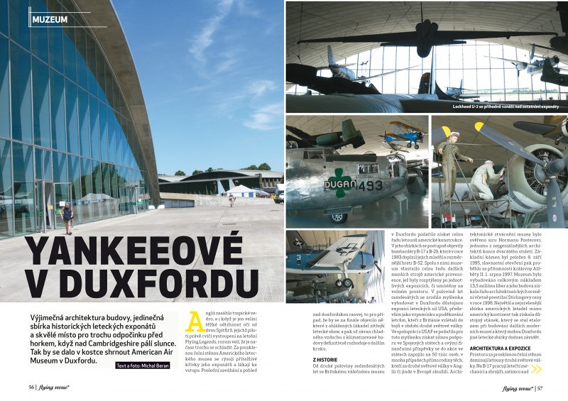 Anglii zasáhlo tropické vedro, a i když je jen velmi těžké odtrhnout oči od dvou Spitfirů, jejichž piloti právě cvičí vystoupení na letošní Flying Legends, rozum velí, že je načase trochu se ochladit. Za prosklenou čelní stěnou Amerického leteckého muzea se rýsují přitažlivé křivky jeho exponátů a lákají ke vstupu. Poslední zaváhání a pohled nad duxfordskou ranvej, to pro případ, že by se na finále objevilo některé z ohlášených lákadel zítřejší letecké show, a pak už závan chladného vzduchu z klimatizované budovy definitivně rozhoduje o dalším kroku.