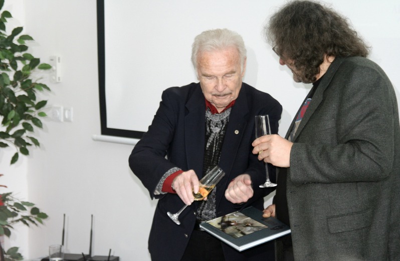 Luděk Munzar a jeden z dvojice autorů Jiří Soukup s připraveným šampaňským