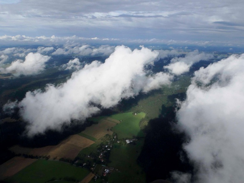 Protože do Šumperka letěli celou dobu za pásem srážek a oblačnosti, počasí jim připravilo zajímavé pohledy, na druhou stranu je ale brzdil vítr. "Vítr nám ze začátku foukal dost zleva a letělo to pomalu, na což doplatil Petr Gurný, kterému už nevyšlo palivo do plánovaného cíle na letišti v Šumperku," komentuje Tomáš Lednik. Jeho kolega přistál bezpečně, jen asi 3 km před Šumperkem.
