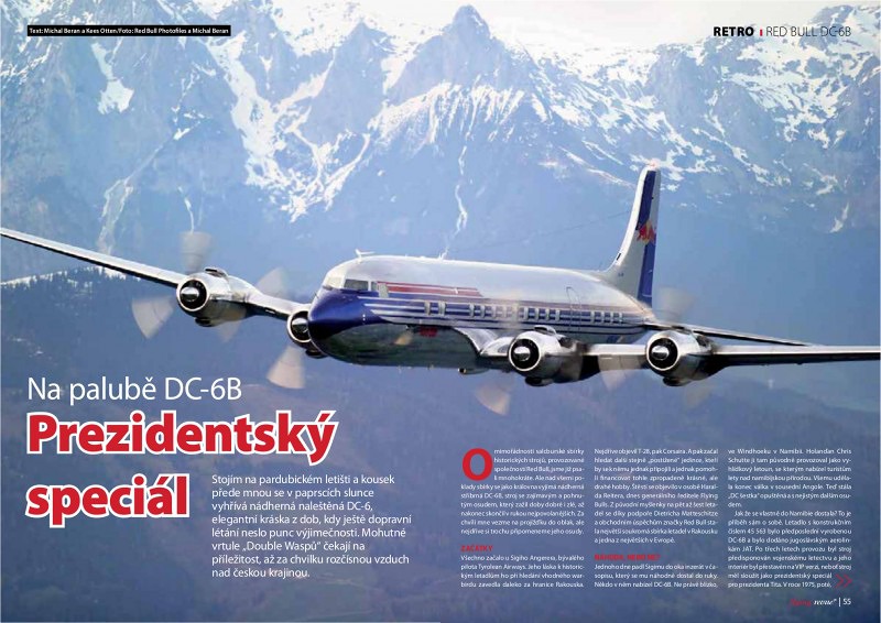 Stojím na pardubickém letišti a kousek přede mnou se v paprscích slunce vyhřívá nádherná naleštěná DC-6, elegantní kráska z dob, kdy ještě dopravní létání neslo punc výjimečnosti. Mohutné vrtule „Double Waspů“ čekají na příležitost, až za chvilku rozčísnou vzduch nad českou krajinou