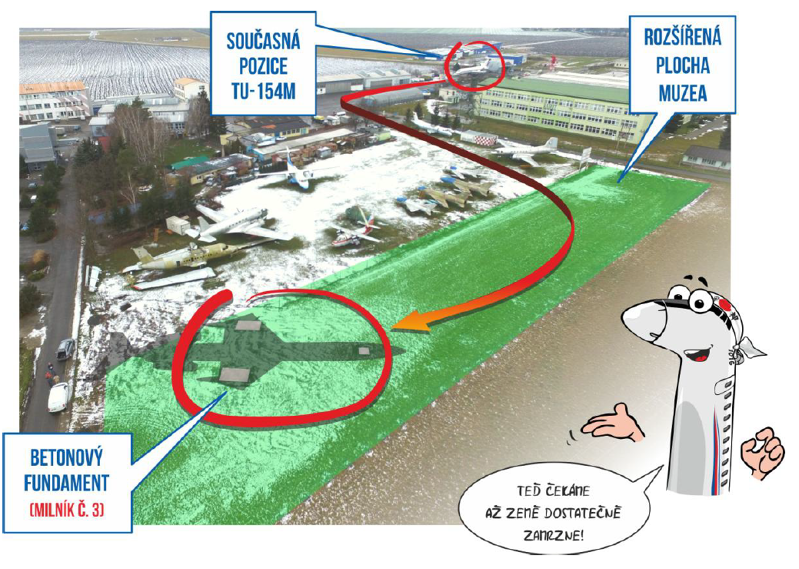 fdgbv0.pngRozšíření plochy pro venkovní expozice Leteckého muzea v Kunovicích. Tu-154M bude umístěno právě v nové části. Zdroj: LMvK