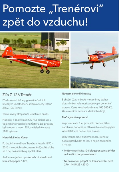 Z126, letoun v majetku Vojenského historického ústavu Praha. M. Srnec je jedním z jeho sponzorů.