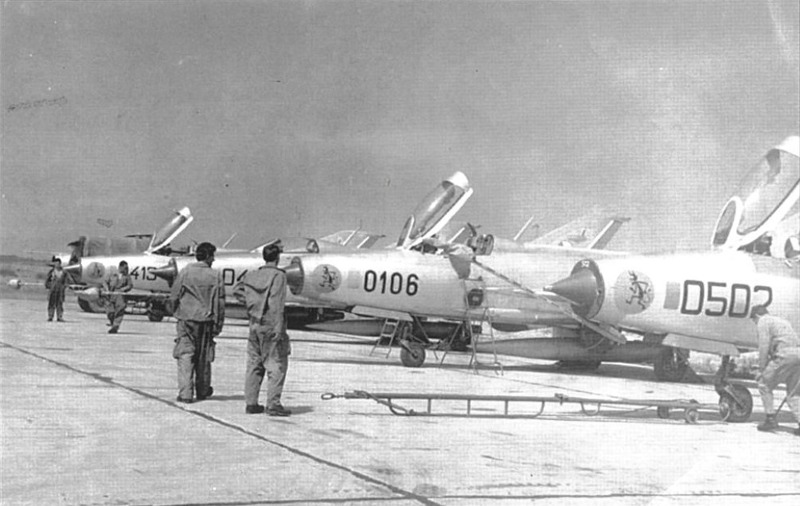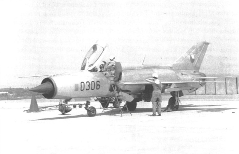 Diskuse s techniky při záletu těžce poškozeného MiG-21PF po opravě. Foto: Archiv J. Oberfalzera