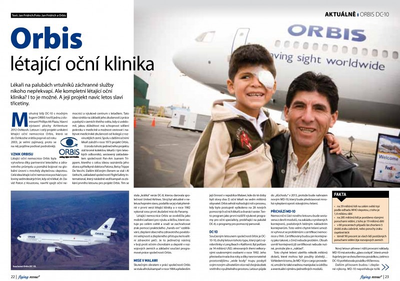 Mohutný bílý DC-10 s modrým logem ORBIS tvořil jednu z dominant Phillips 66 Plaza, hlavní výstavní plochy AirVenture 2012 Oshkosh. Letoun i celý projekt unikátní létající oční nemocnice Orbis, která se do Oshkoshe vrátila poprvé od roku 2003, je velmi zajímavý, proto se na něj pojďme podívat podrobněji.