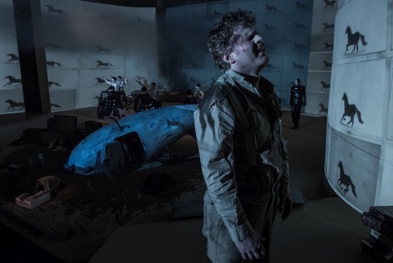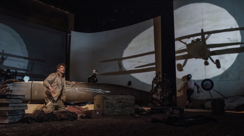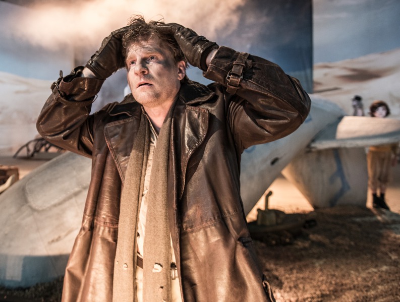 Petr Batěk v roli pilota. Antoine de Saint-Exupéry: Malý princ, Laterna magika, národní divadlo Praha. Foto: Laterna magika, Pavel Nesvadba