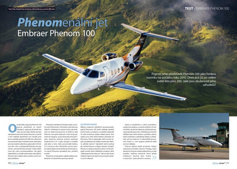 Od okamžiku, kdy jsme Phenom 100 poprvé představili na našich stránkách, uplynuly již téměř dva roky. Za tuto dobu dodal výrobce uživatelům přes dvě stovky letounů a mnohé z nich nalétaly desetitisíce mil. Využili jsme proto nabídky společnosti ABS Jets, abychom vás seznámili nejen se zkušenostmi, které jeho provozovatelé nasbírali za uplynulých 24 měsíců, ale i s tím, co příspěvek Embraeru do segmentu „entry level executive jet“ může nabídnout jak svým provozovatelům, tak jejich zákazníkům a rovněž soukromým vlastníkům. Phenom byl v době svého uvedení na trh velkým příslibem.
