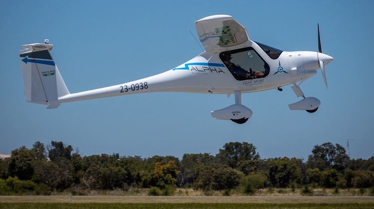 První let certifikovaného letounu s elektrickým motorem v Austrálii. Pipistrel Alpha Electro na letišti Jandakut u Perthu. Zdroj: Electro.Aero