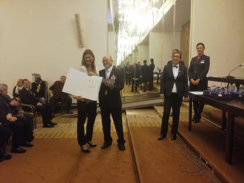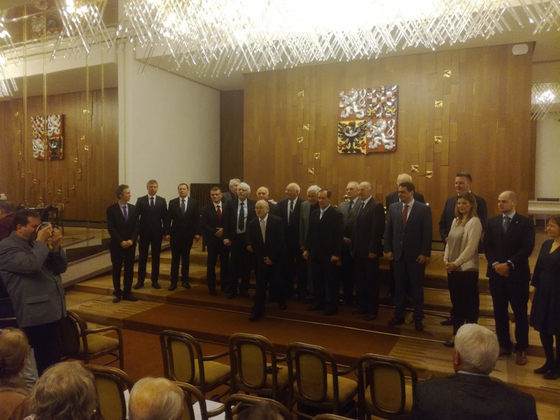 Vladimír DÁNIEL a kolektiv VZLÚ, a.s., Letňany za úspěšnou práci na konstrukci první české technologické nanodružice VZLU SAT-1, vypuštěné 23. 6. 2017.
