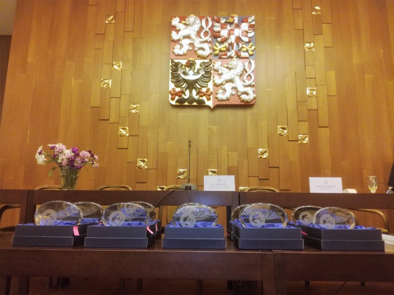 Skleněné plastiky pro oceněné osobnosti v letectví za rok 2017. Foto: Jan Dvořák, Flying Revue