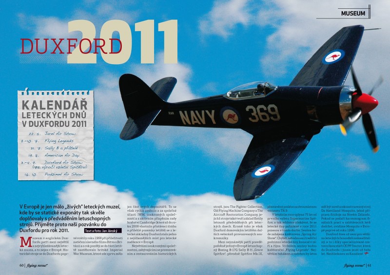V Evropě je jen málo „živých“ leteckých muzeí, kde by se statické exponáty tak skvěle doplňovaly s předváděním letuschopných strojů. Přijměte proto naši pozvánku do Duxfordu pro rok 2011.