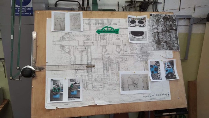Převážná část přednášky, která se nakonec protáhla na 4(!) hodiny, byla věnována praktickým ukázkám na motoru Walter Minor 4 - III. Hosté mohli vidět například instalaci klikové hřídele, přednášející se před nimi věnovali také pístové skupině, zapalování a dalším skupinám a podskupinám tohoto pístového motoru.