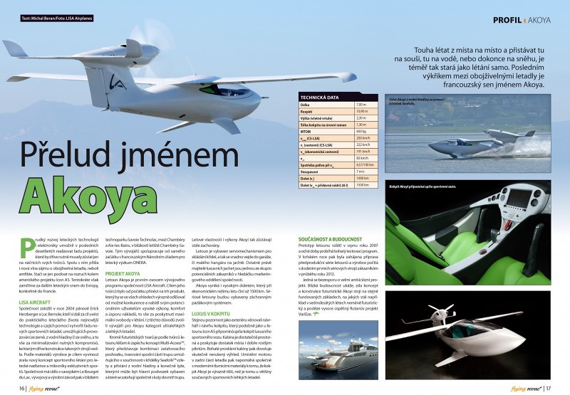 Letoun Akoya je prvním ovocem vývojového programu společnosti LISA Aircraft. Cílem jeho tvůrců bylo od počátku přinést na trh produkt, který by se ve všech ohledech výrazně odlišoval od možné konkurence a nabídl svým potencionálním uživatelům vysoké výkony, komfort a úsporu nákladů, to vše za poskytnutí maximální svobody v létání. I z těchto důvodů zvolili vývojáři pro Akoyu kategorii ultralehkých a lehkých letadel.