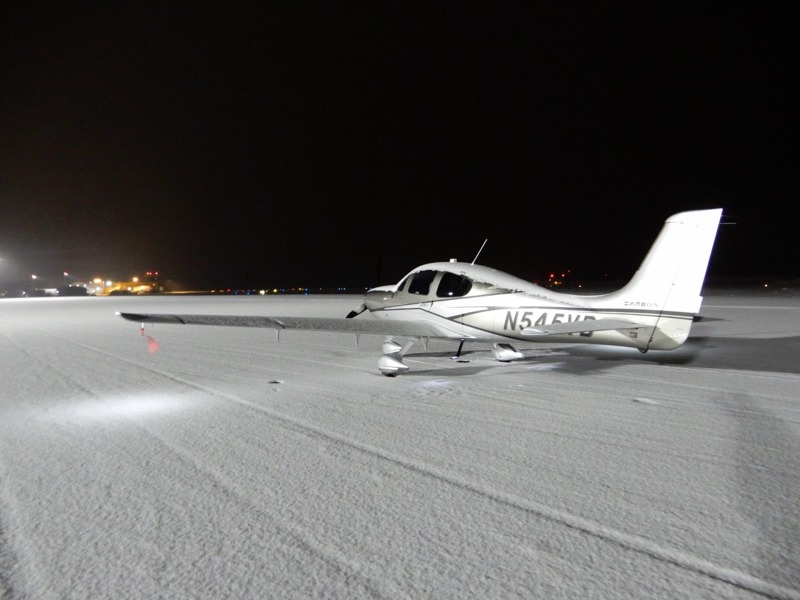 Vše dobře dopadlo, a tak jsme mohli vlastní letadlo převzít hned následující den v dopoledních hodinách. Avšak studená fronta tvořící pás od jihu až k severu USA znemožnila pondělní odlet, jak bylo původně plánováno, a tak po předání došlo jen na krátký zálet. Počasí na studené frontě bylo opravdu IFR, intenzita srážek, nízká oblačnost a turbulence v IMC podmínkách nebyly nic příjemného. Dalšího dne ráno jsme již měli letadlo nachystané a dotankované po „špunty“.