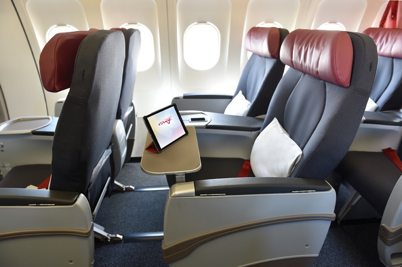 Sedačky „Premium Rouge“ jsou prostornější, dají se více sklopit. Cestující na těchto sedačkách mají k dispozici rozšířenou nabídku jídel a nápojů a dalších služeb, navíc jsou odbaveni přednostně a do letadla nastupují jako první. Mají nárok na odbavení dvou kusů zavazadel zdarma. Na palubě mají k dispozici iPad se zábavním systému Player. Cestující ve třídě Economy dostávají během letu zdarma teplé jídlo a mohou si vybrat z nabídky nealkoholických nápojů.