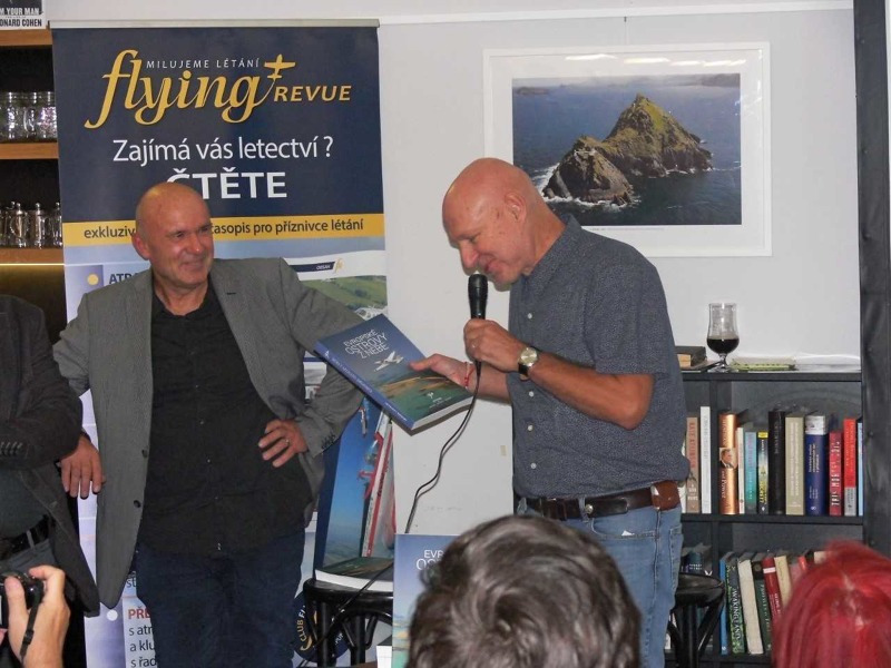 Naštěstí zvuk, a tedy i průvodní slovo protagonistů křtu dosáhly až k nim, a tak si mohli vychutnat naše podvečerní povídání o knize i oni. "Víte, já jsem se v dětství zamiloval do ostrovů. Tehdy jsem je mohl navštěvovat jen prstem na mapě, to ale zase probouzelo moje představy, a tak jsem mohl snít sny o tom, jak je jednou navštívím. A když jsem začal aktivně létat, ostrovy byly náhle na dosah a sny se začaly měnit na skutečnost," líčil Jiří Pruša cestu ke knize, již spolu s Petrem Nikolaevem v úterý pokřtili.