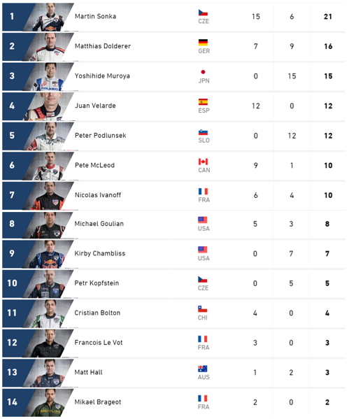 Petr Kopfstein mezi osmi nejlepšími nepřešel přes úřadujícího mistra světa, Němce Matthiase Dolderera, trať ale zaletěl v čase, jenž by obstál i ve finálové čtyřce. Z Kalifornie si tak Kopfstein odváží pět bodů a posunul se v celkovém hodnocení na desátou pozici.