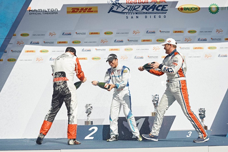 Red Bul Air Race  Pro Petra Kopfsteina kalifornský závod znamenal zatím největší úspěch v Master Class - postup do finálové osmičky. Martinu Šonkovi v San Diegu těsně unikla finálová čtyřka, páté místo mu přineslo šest bodů a s 21 body stále vede celkové pořadí. Vítězství slavil Šonkův přemožitel z Round of 8 Japonec Muroya.