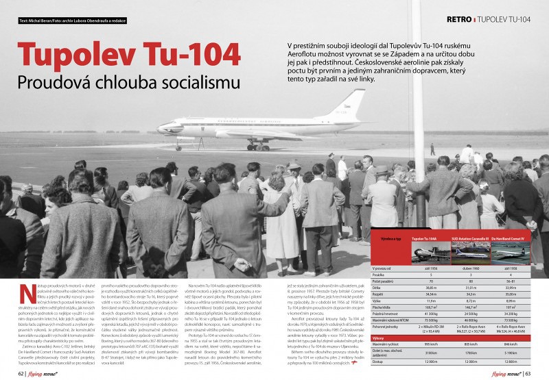 V prestižním souboji ideologií dal Tupolevův Tu-104 ruskému Aeroflotu možnost vyrovnat se se Západem a na určitou dobu jej pak i předstihnout. Československé aerolinie pak získaly poctu být prvním a jediným zahraničním dopravcem, který tento typ zařadil na své linky.