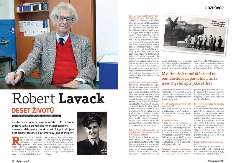 Robert Lavack je dnes stále svěžím jednadevadesátiletým gentlemanem plným elánu a jeho životní příběh by vydal na dlouhou a napínavou knihu. Byl pilotem stíhacího Hurricanu v Západní poušti, absolvoval dva operační turnusy jako příslušník Bomber Command a ještě na konci války stihnul výcvik stíhače pro letadlové lodi britského námořnictva. Létal jako bush pilot na mrazivém kanadském severu i v horkách afrického kontinentu. Dnes žije jako švédský občan v Praze.