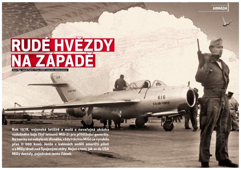 Rok 1978, vojenské letiště a malá a neveřejná ukázka vzdušného boje čtyř letounů MiG-21 pro přihlížející generály. Na tom by asi nebylo nic divného, vždyť těchto MiGů se vyrobilo přes 11 000 kusů. Jenže v kabinách seděli američtí piloti a s MiGy létali nad Spojenými státy. Nejen o tom, jak se do USA MiGy dostaly, pojednává tento článek.