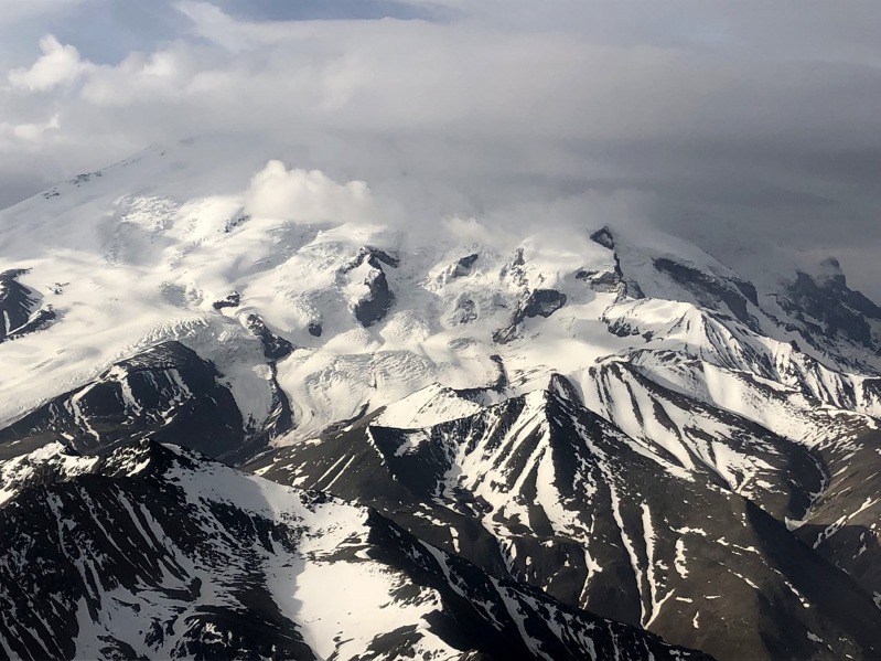 Kromě obletu měst Moskva, Kazaň, Samara, Ufa, Čekobsary, ale I Saratov a Volgograd jsem měl naplánovaný i oblet části Kavkazu jižně od Piatigorsku. Bohužel to odpoledne tam byl nejdříve asi hodinový zákaz letů, protože probíhalo vystřelování jakýchsi hlavic, které rozptylují krupobití a když zákaz skončil, tak přišla bouřka. Sice už bez krupobití, ale létat v ní v horském terénu by býval rozhodně nebyl dobrý nápad. Jsem proto moc rád, že se mi podařilo udělat alespoň pár záběrů nejvyšší evropské hory Elbrus příští den ráno při odletu do Krasnodaru.
