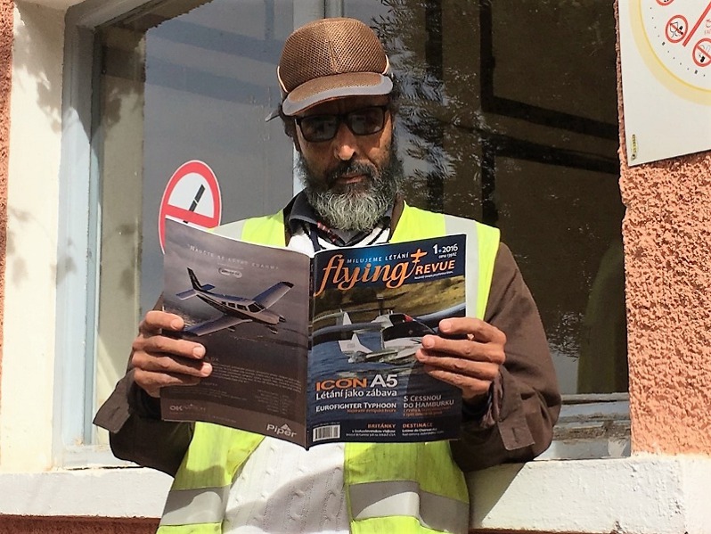 Letiště v Dakhle vypadá velmi pěkně. Neodolal jsem, a i tady si dopřál foto do své sbírky "Nadšení čtenáři Flying Revue". Začíná se pěkně rozrůstat. Dnes jsem docílil nejjižnějšího bodu trasy, zítra mě čeká let opět k severu, od pobřeží se ale už trochu odkloním a nocovat chci už na dohled pohoří Atlas, ve městě Ouarzazate. To jsem ještě netušil, že zítřejší let bude docela drama...