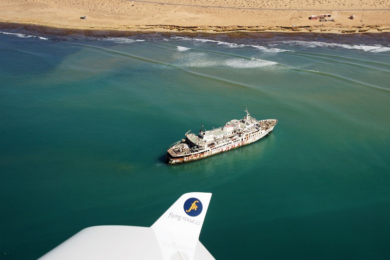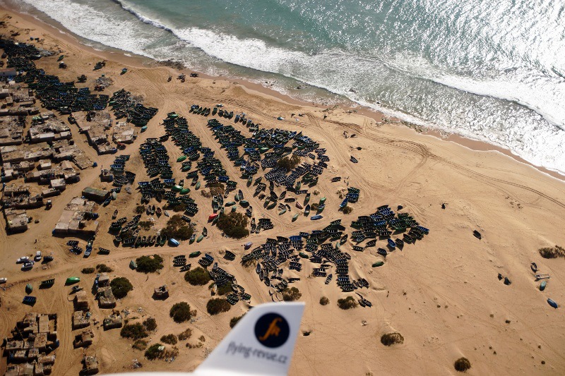 Úžasný let podél pobřeží Nakonec to vyšlo, tak jsem mohl vyrazit na poslední úsek, jenž jsem letěl ve stopách slavné letecké pošty Aeropostale (létal tu i slavný Antoine de Saint-Exupéry). Let z Agadiru do Dakhly, podobně jako let z Casablancy do Agadiru, jsem si užíval. Byly to hodně dlouhé etapy (kolem šesti hodin ve vzduchu) zpestřené vždy na začátku a konci místní byrokracií, ale zážitky z letu byly úžasné. Desítky kilometrů písečných dálav mizí na obzoru, pod vámi větrem a oceánem vybroušenými zuby Sahara padá do moře. Letěl jsem nad mořem poměrně nízko, kolem pěti set stop, po levé ruce pobřeží, které z moře stoupalo do podobné výšky, v jaké jsem letěl pár desítek či stovek metrů od pobřeží já, tak jsem ho mohl dobře pozorovat. I když popravdě, moc pestré to nebylo. Sem tam nějaká vesnice či oáza nebo vrak lodi, jinak poušť. Vzrušující to ale bylo zcela bezpochyby, vše po pravé ruce dokresloval nekonečný Atlantik.