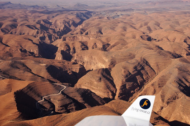 Turbulence, jaké jsem ještě nezažil Zážitek číslo dva, poměrně dost nepříjemný - dvě hodiny silných turbulencí, jaké jsem dosud nezažil. Rotory na jižní straně Antiatlasu mocně smýkaly s letadlem ve všech směrech. Cokoli nebylo přivázáno, létalo kolem mě jako z vystřelené z granátometu, takže jsem musel během turbulence při ne úplně jednoduché pilotáži myslet ještě na to, aby mě něco nebacilo do hlavy a aby let bez úrazu přežil i kryt kabiny Dynamicu. Na jednu stranu tyhle situace nijak zvášť neprožívám, musím ale přiznat, že dvě hodiny turbulencí v 300 km/h rychlosti člověka docela vyčerpají. Že byste se mohli napít, na to můžete směle zapomenout. Musím přiznat, že v takových chvílích jsem vážně rád, že letím sám, protože to opravdu není pro každého...