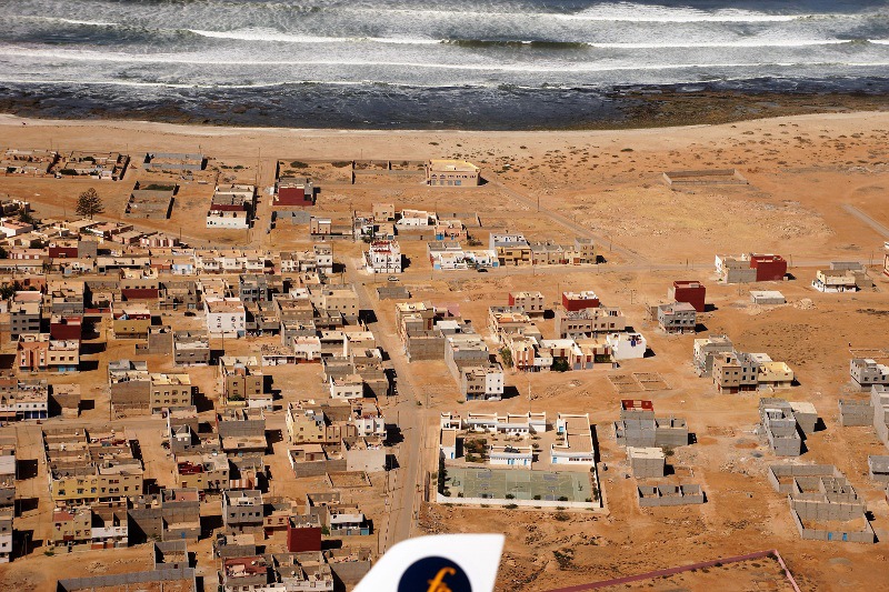 Co je zajímavé, žádná vedra, která jsem na Sahaře čekal, se nekonala. V letadle bylo sice trochu tepleji, ale na zemi obvykle příjemných cca 24- 25 °C. Přece jen léto už bylo daleko za námi i tady. Dakhhla je nevelké městečko ležící na zhruba 50 km dlouhém apendixu, který od pobřeží odděluje 10 km záliv.