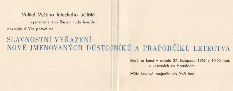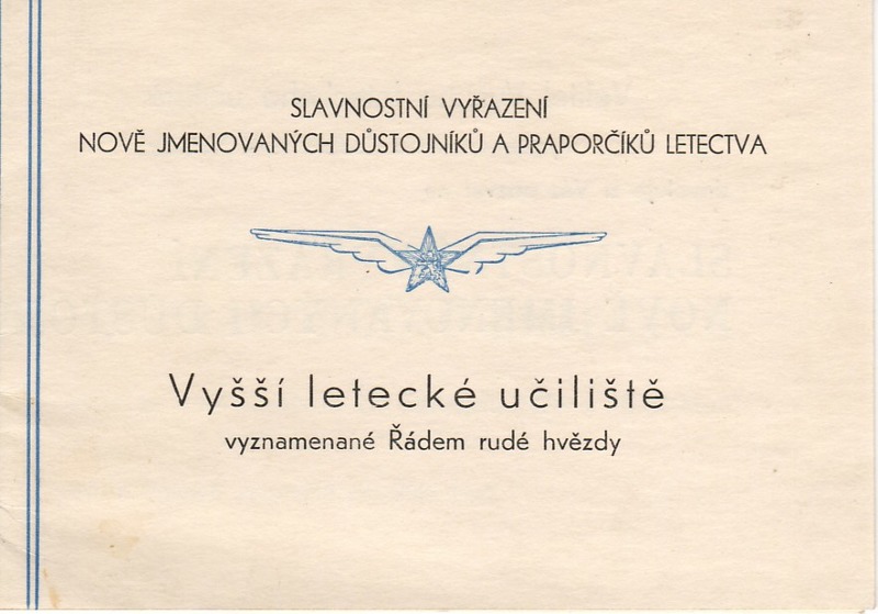 Vyšší letecké učiliště Košice. Vyřazen jako pilot bez třídy na letounu MiG-15bis. Foto: Archiv O. Pelčáka