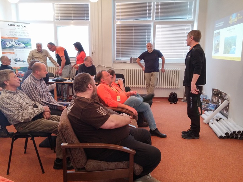 Na domovské bázi přerovských pilotů strojů s podivuhodným názvem vírník předávali Jiří Pruša s Milošem Dermíškem místním leteckým nadšencům svoje zkušenosti s VFR létáním. Prezentace doprovázená jako obvykle řadou fotografií a videí z konkrétních situací a expedic našla u přerovských pilotů živou odezvu a původně plánované čtyři hodiny se protáhly dobře o hodinu. Zájem byl velký, někteří se do místnosti nevešli a museli vše sledovat z recepce školy FlyWay, v jejíchž prostorách na přerovském letišti se školení konalo.