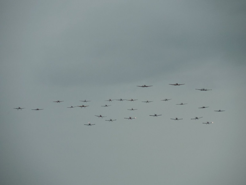 Čas „Č“ pro velkoskupinu nastal v sobotu ve 14.00 hod., kdy se do vzduchu vznesly desítky letadel a provedly impozantní skupinový průlet nad letištěm.