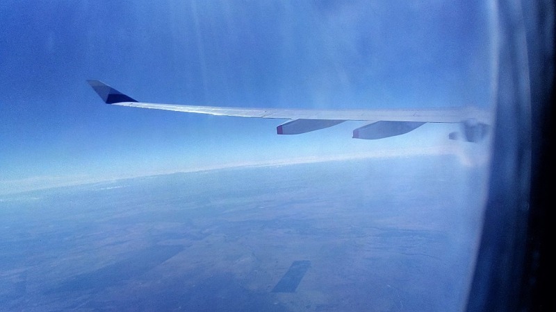 třiadvaceti hodinách letu a dvaceti hodinách čekání na přestupech.