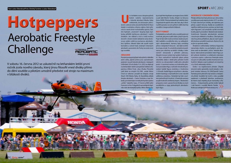 Pozvání postupně přijala řada pilotů z několika zemí světa, jejichž jména jsou opravdovým pojmem na poli letecké akrobacie v kategorii Unlimited. Už od středy 15. 6. 2012 se objevují na letňanském letišti sympatická Světlana Kapanina a Viktor Čmal , oba z Ruska. Původně měli létat na strojích SU-31M , avšak Viktor Čmal se nakonec posadil do kokpitu stroje Sbach 300 Marka Hyky. Ze Španělska přijela dvojice akrobatů – Castor Fantoba a Juan Velarde, pro které bylo rovněž přichystáno jedno „súčko“ stejného typu. Z Francie přilétl pilot Francois Le Vot. Pole pilotů samozřejmě doplnila naše akrobatická špička. Mimo Marka Hyky to byli Petr Kopfstein se strojem Extra 330SC a pak také Martin Šonka, létající na letounu Extra 330SR. Před pořadateli byl nelehký úkol. Organizačně zajistit celou akci tak, aby si diváci přišli opravdu na své a přitom viděli všechny soutěžící z bezprostřední blízkosti.