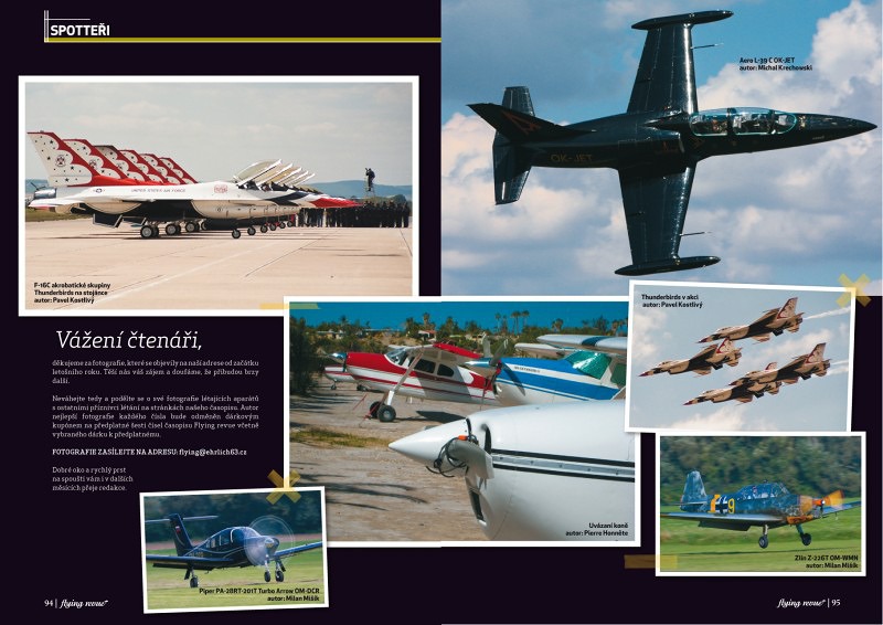 Neváhejte tedy a podělte se o své fotografie létajících aparátů s ostatními příznivci létání na stránkách našeho časopisu. Autor nejlepší fotografie každého čísla bude odměněn dárkovým kupónem na předplatné šesti čísel časopisu Flying revue včetně vybraného dárku k předplatnému.