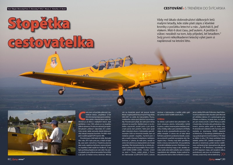 Původně jsem chtěl letět do Itálie. Bohužel léto roku 2011 bylo pod psa, a když už bylo líp, zase jsem nemohl já. Prázdniny plynuly jako voda, najednou byl konec srpna a já jsem se stopětkou letěl nejdál do Hodkovic. A tak bylo potřeba přeplánovat celý výlet. Na zadní sedadlo jsem přibral kamaráda Petra Kříže a jal jsem se hledat novou destinaci. Minulý rok na Aviatické pouti mě pozval André Moser, majitel jediné letuschopné Pragy Baby (HB-UAF) na světě, do švýcarského Thunu, malebného města pod úbočími švýcarských Alp. Pozvání jsem přijal, ale výlet jsem tehdy odsunul na neurčito. Naštěstí jsem si na Andrého vzpomněl, poslali jsme si pár zpráv a bylo jasné, kam poletím. Výlet jsem spojil také s leteckým dnem v Hahnweide, specializovaným čistě na historická letadla, kam už můžeme zařadit i stopětku. Vyměnil jsem si pár e-mailů s Hansem Puskeilerem, ředitelem airshow, a i přesto, že měli plno, neměli to srdce mě odmítnout, když poletím až z České republiky. Plán byl jednoduchý, ve středu přeletět z Letňan až do švýcarského Thunu (LKLT-