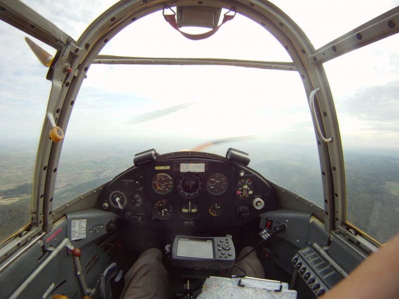 Ve středu o půl sedmé ráno přecházím s Petrem orosenou plochu letňanského letiště k Letovu, s sebou neseme jeden baťůžek, brašničku s foťáky, tašku s pár sušenkami a tři flašky oleje, víc se do „zavazadlového prostoru“ stopětky nevejde. U Letova nás už čeká Jakub Kořínek a společně vyndáváme letadlo, soukáme se dovnitř a pečlivě srovnáváme věci. Navigační lety s Trenéry mají další specifikum, které u Cessny nemusíte řešit, tím je prakticky minimální odkládací prostor. Před letem si musíte srovnat všechny mapy a věci, zkrátka nemáte vedle sebe další sedadlo, kam si můžete nepotřebné věci odkládat. Kolem sedmé hodiny zdravíme slečnu řídící ve Kbelích a startujeme z dráhy 05R směr Průhonice. Nad Průhonicemi potkáváme Slávu Kováře v jeho Moravě při obhlídce dálnice D1 a pokračujeme přes Příbram na Klatovy. Je jasné ráno, na nebi je jen pár stratocumulů a údolí Vltavy je zalito v husté mlze.
