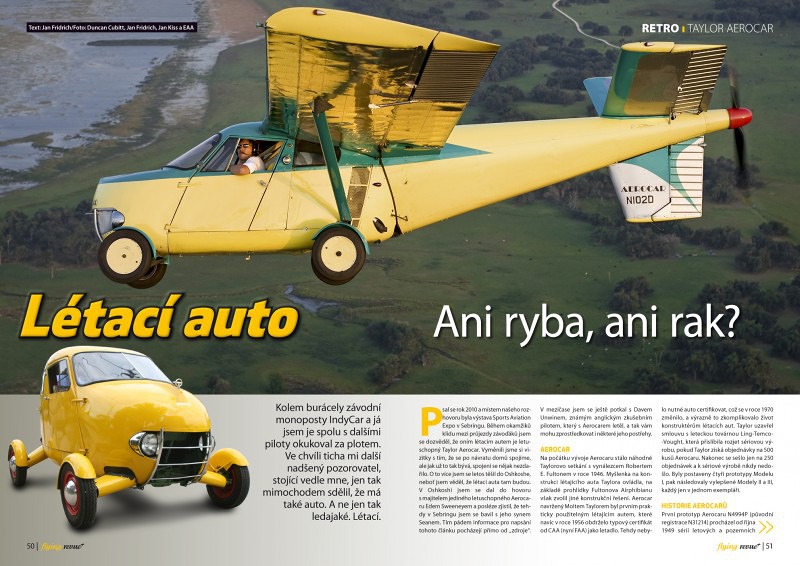 Psal se rok 2010 a místem našeho rozhovoru byla výstava Sports Aviation Expo v Sebringu. Během okamžiků klidu mezi průjezdy závoďáků jsem se dozvěděl, že oním létacím autem je letuschopný Taylor Aerocar. Vyměnili jsme si vizitky s tím, že se po návratu domů spojíme, ale jak už to tak bývá, spojení se nějak nezdařilo. O to více jsem se letos těšil do Oshkoshe, neboť jsem věděl, že létací auta tam budou. V Oshkoshi jsem se dal do hovoru s majitelem jediného letuschopného Aerocaru Edem Sweeneyem a posléze zjistil, že tehdy v Sebringu jsem se bavil s jeho synem Seanem. Tím pádem informace pro napsání tohoto článku pocházejí přímo od „zdroje“. V mezičase jsem se ještě potkal s Davem Unwinem, známým anglickým zkušebním pilotem, který s Aerocarem letěl, a tak vám mohu zprostředkovat i některé jeho postřehy.