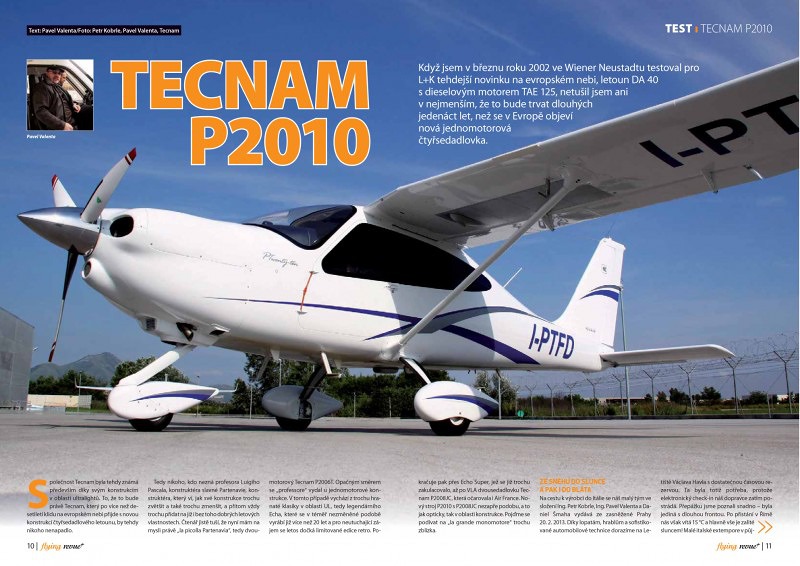 Společnost Tecnam byla tehdy známá především díky svým konstrukcím v oblasti ultralightů. To, že to bude právě Tecnam, který po více než desetiletí klidu na evropském nebi přijde s novou konstrukcí čtyřsedadlového letounu, by tehdy nikoho nenapadlo. Tedy nikoho, kdo nezná profesora Luigiho Pascala, konstruktéra slavné Partenavie, konstruktéra, který ví, jak své konstrukce trochu zvětšit a také trochu zmenšit, a přitom vždy trochu přidat na již i bez toho dobrých letových vlastnostech. Čtenář jistě tuší, že nyní mám na mysli právě „la picolla Partenavia“, tedy dvoumotorový Tecnam P2006T. Opačným směrem se „professore“ vydal u jednomotorové konstrukce. V tomto případě vychází z trochu hranaté klasiky v oblasti UL, tedy legendárního Echa, které se v téměř nezměněné podobě vyrábí již více než 20 let a pro neutuchající zájem se letos dočká limitované edice retro. Pokračuje pak přes Echo Super, jež se již trochu zakulacovalo, až po VLA dvousedadlovku Tecnam P2008JC, která očarovala i Air France. Nový stroj P2010 s P2008JC nezapře podobu, a to jak opticky, tak v oblasti konstrukce. Pojďme se podívat na „la grande monomotore“ trochu zblízka.