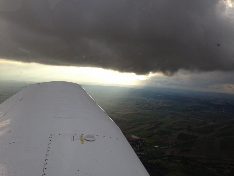 Na druhém rádiu monitorujeme frekvenci Eggenfelden. Díky tomu víme, že z Vilshofenu se na poměrně malé altitude 2500 ft blíží VFR provoz se stejným cílem jako my. Základna oblačnosti je ovšem 3500 ft, a tak jej vidět nemůžeme, jsme totiž stále v IMC. S ohledem na prostor třídy E nemůže VFR provoz letět výše, musí si zachovávat 1000 ft pod základnou oblačnosti. To nám dává v 5000 ft nad letištěm bezpečný vertikální rozstup od letu VFR.