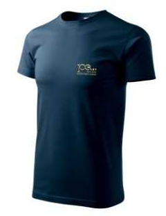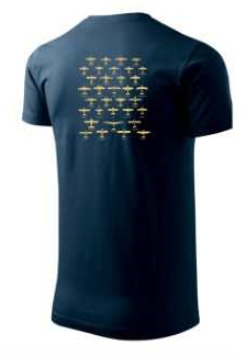 Triko v barvě "Blue Navy" se zlatými motivy 100 let letiště Praha Letňany
