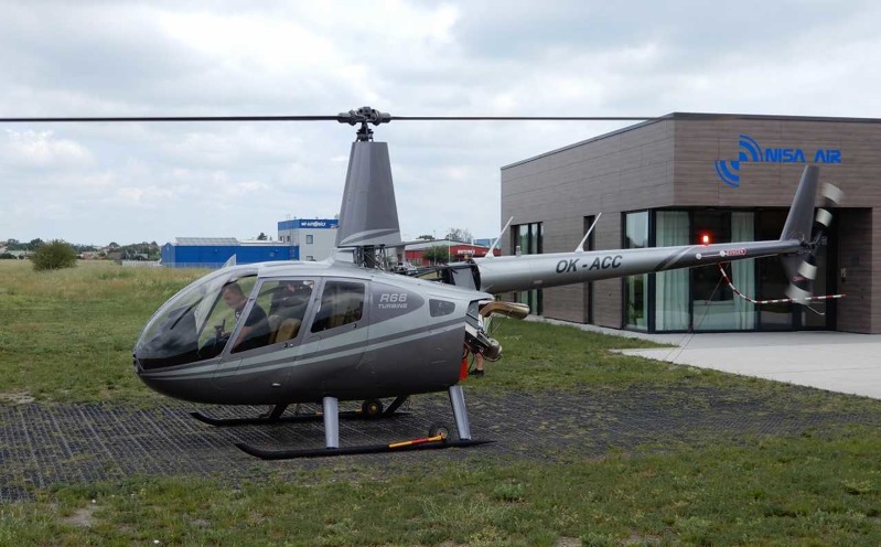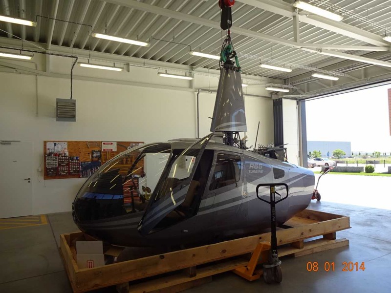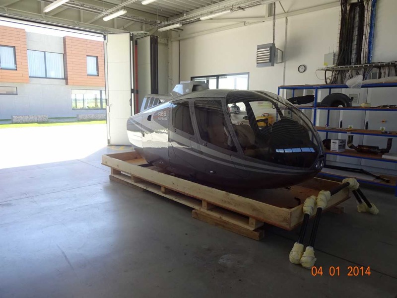 Sem bedny dorazí po absolvování celní přejímky vrtulníku na našem území. Robinson Helicopter Company (RHC) vyrábí tento pětimístný turbínový vrtulník od roku 2010 a společnost NISA AIR je jediným autorizovaným dealerem tohoto vrtulníku pro Českou republiku.
