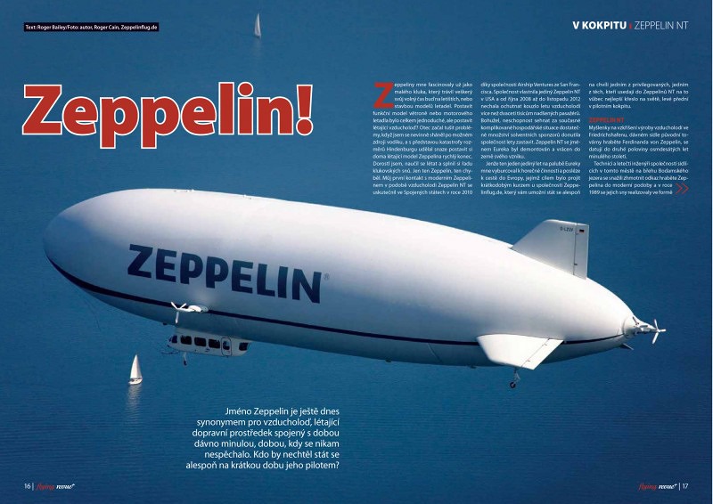 Zeppeliny mne fascinovaly už jako malého kluka, který trávil veškerý svůj volný čas buď na letištích, nebo stavbou modelů letadel. Postavit funkční model větroně nebo motorového letadla bylo celkem jednoduché, ale postavit létající vzducholoď? Otec začal tušit problémy, když jsem se nevinně sháněl po možném zdroji vodíku, a s představou katastrofy rozměrů Hindenburgu udělal snaze postavit si doma létající model Zeppelina rychlý konec. Dorostl jsem, naučil se létat a splnil si řadu klukovských snů. Jen ten Zeppelin, ten chyběl. Můj první kontakt s moderním Zeppelinem v podobě vzducholodi Zeppelin NT se uskutečnil ve Spojených státech v roce 2010 díky společnosti Airship Ventures ze San Francisca. Společnost vlastnila jediný Zeppelin NT v USA a od října 2008 až do listopadu 2012 nechala ochutnat kouzlo letu vzducholodí více než dvaceti tisícům nadšených pasažérů. Bohužel, neschopnost sehnat za současné komplikované hospodářské situace dostatečné množství solventních sponzorů donutila společnost lety zastavit. Zeppelin NT se jménem Eureka byl demontován a vrácen do země svého vzniku.
