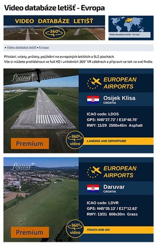 Nyní je ve video databázi 142 českých, 48 rakouských a 12 chorvatských letišť a SLZ ploch.