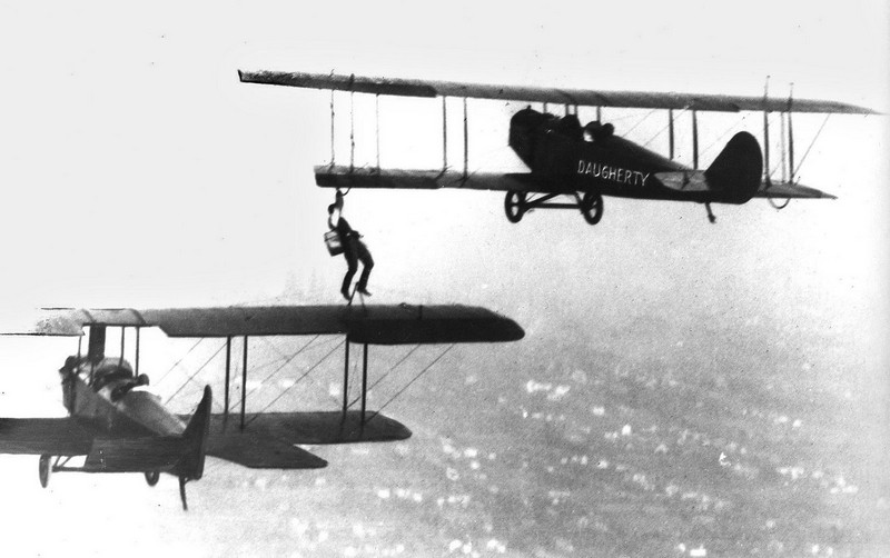 Velmi neobvyklým způsobem bylo provedeno první doplnění paliva za letu. Wesley May přelezl za letu z křídla jednoho letounu na druhé a na zádech měl kanystr s palivem.