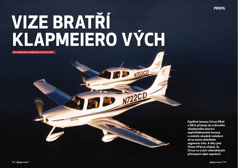 Úspěšné letouny Cirrus SR20 a SR22 přinesly do světového všeobecného letectví nepřehlédnutelné inovace a změnily zásadně rozložení sil na tomto důležitém segmentu trhu. A díky jetu Vision SF50 je zřejmé, že Cirrus ve svých vizionářských přístupech nijak nepolevil.